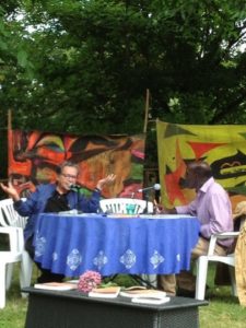 Arlette Pascal, peintre et Abdulsattar al Mansour, calligraphe syrien (traduction assurée en direct par Roy, volontaire libanais permanent à Taizé )